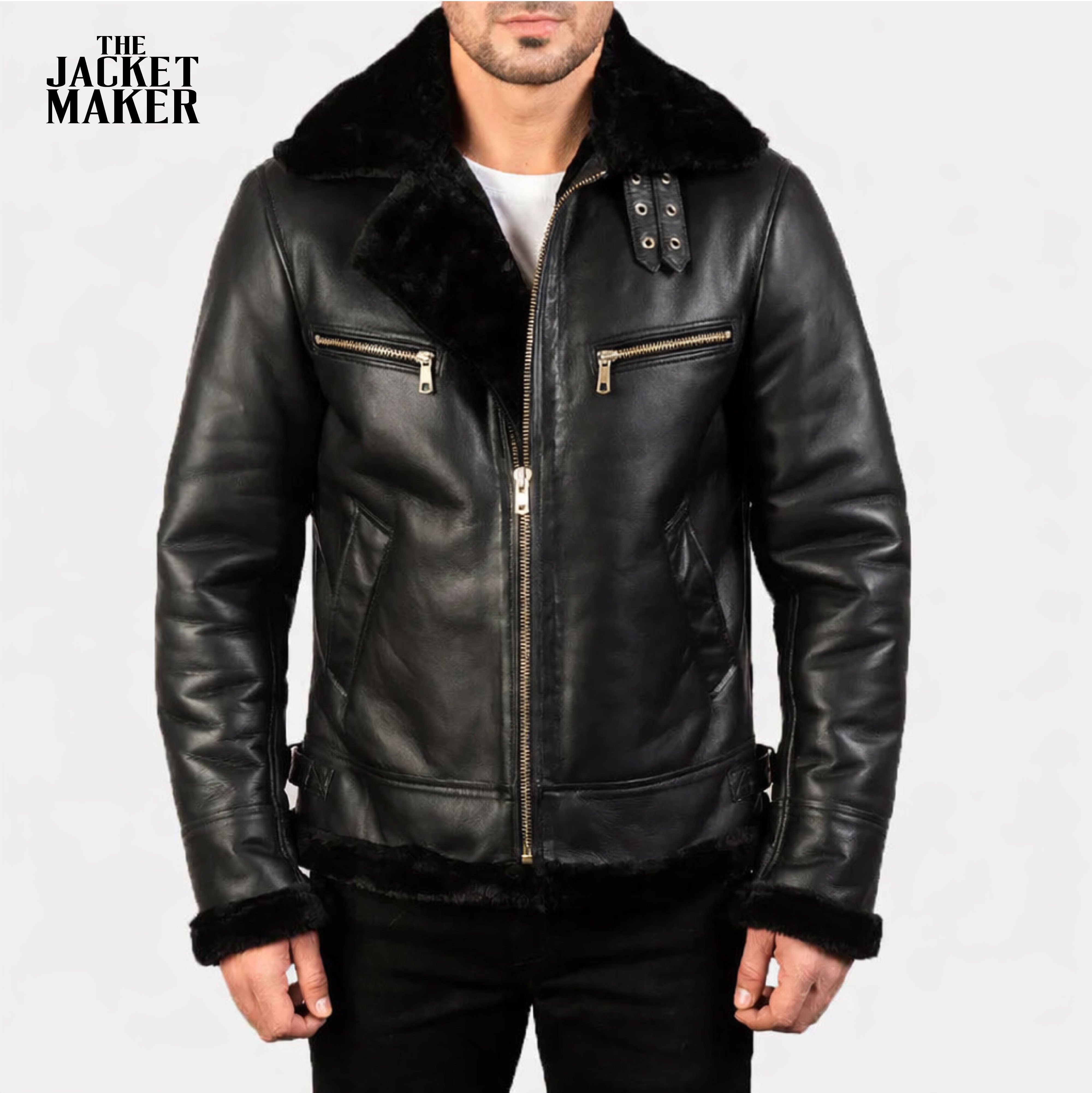 Francis B3 Black Leather Bomber Jacket with the customizations you’ve outlined: