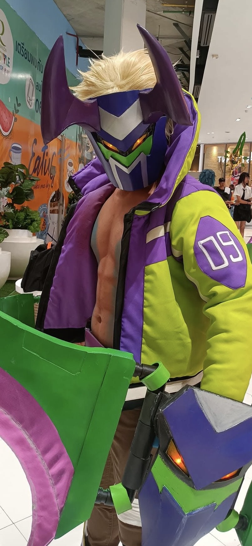 • Stitched patch in oval shape, on the left arm in purple with 09 embroidered in White (as per mock & references)